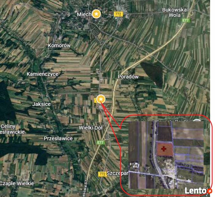 Jest to niezabudowana działka ew. nr 460/1 o pow. 0,7610 ha. Przedmiotowa nieruchomość znajduje się̨ w obszarze, dla którego brak obowiązującego planu zagospodarowania przestrzennego. Zgodnie ze Studium Uwarunkowań i Kierunków Zagospodarowania Przestrzennego Gminy i Miasta Miechów – Uchwała Rady Miejskiej w Miechowie nr LI/800/2024 z dnia 8 lutego 2024r. działka ew. nr 460/1 usytuowana jest w terenach zieleni o symbolu Z2. Przez działkę przebiega sieć wodociągowa. W bezpośrednim sąsiedztwie działki przebiega sieć elektryczna i telekomunikacyjna.